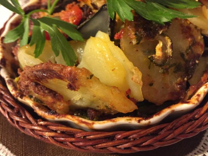 Da manuale la tiella pugliese che è sempre stato uno dei suoi piatti forti.