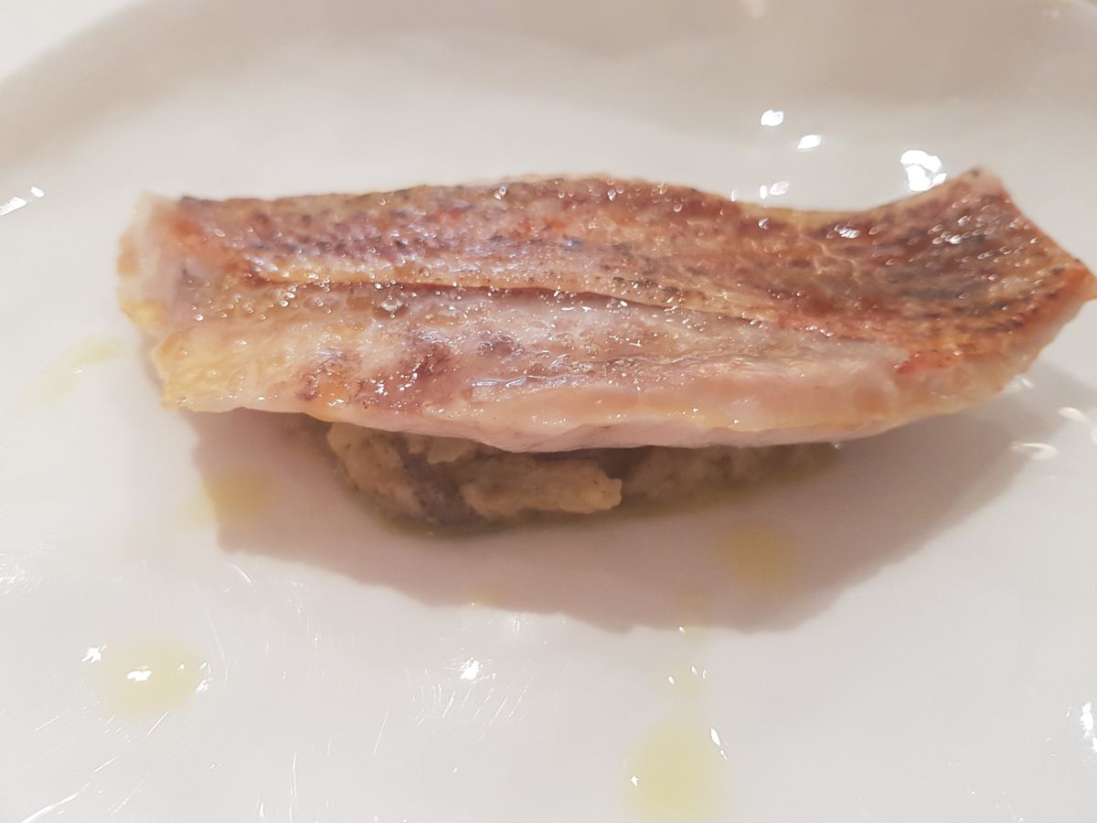 Calamaro riso midollo e pancetta. Piatto in cui viene fuori un gusto umami lunghissimo, il riso è buono e molto aromatico. Il ricordo raffinato di un altro piatto tipico portoghese. Chiudiamo con la pluma di maiale iberico con purea di fave e coulis di pane e una triglia con melanzane. Quest’ultimo un piatto centratissimo e che rappresenta a mio avviso l’essenza della cucina contemporanea d’autore. L’amaro della triglia e il piccante della melanzana, due soli e semplici ingredienti che qui restituiscono una complessità laddove invece immagini ci sia solo qualcosa di semplice. Serra, formaggio tipico, in tre stagionature: 45 giorni, 4 mesi e 1 anno.