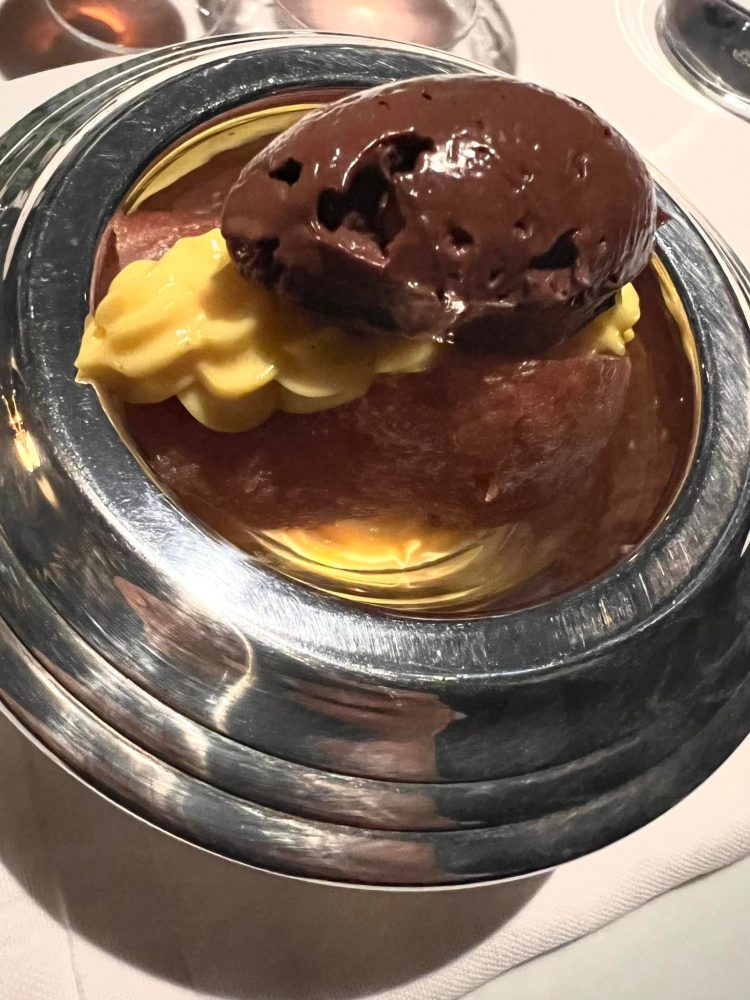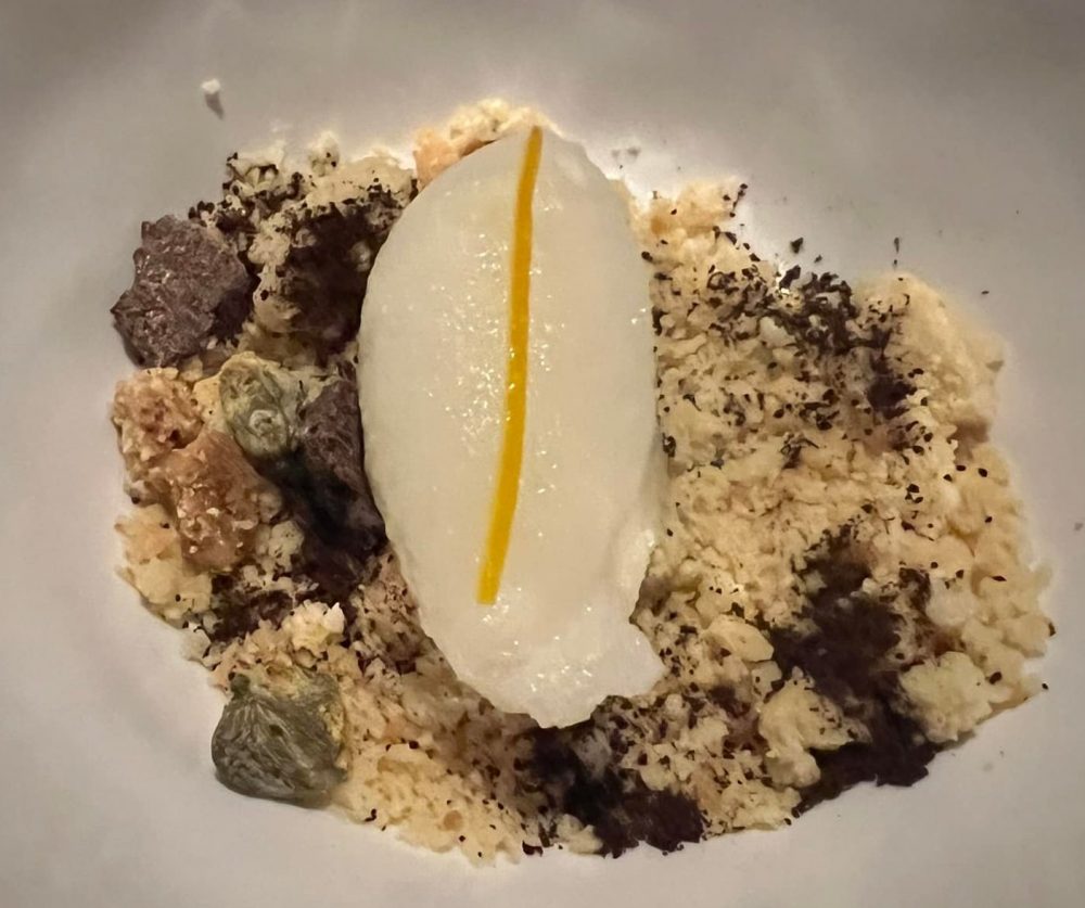 Aver resettato l’impostazione nello chef che attraversa l’età della maturità professionale (classe 1978) e la presenza in sala di Carlotta Petrilli ci presentano una persona più rilassata, più contenta, soprattutto più concentrata di fare cose che possono essere lette facilmente dai clienti con il gusto o con il divertimento e l’allegoria del nomi. In soffitto, mineralità, acidità, toni bruciati oggi tanto di moda, presenti non quanto basta ma quando serve, non c’è timore di presentare piatti appaganti con punte di morbidezza e anche di dolcezza. Insomma, il segnale di un cuoco che, stavolta si, fonde le tendenze e non le cavalca lasciandosi trascinare spesso in un copia e incolla com purtroppo avviene a chi si forma alla scuola di Instagram.