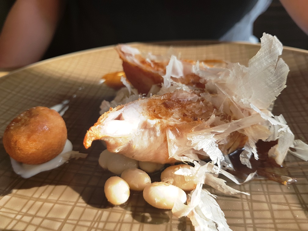 Caracol, ricciola con verdure e maionese al sapore di brace