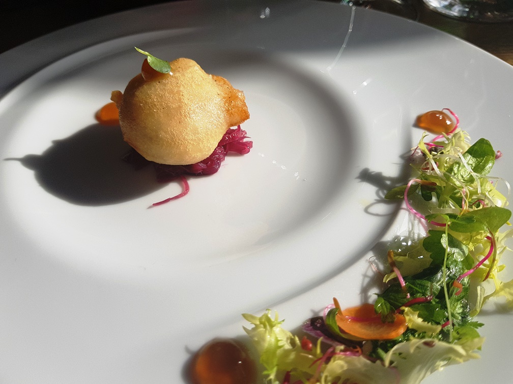 Caracol- Fritto di lampuga_ cipolle in agrodolce_ erbe selvatiche e salsa Ponzu 2/11/2017 Torna a: Il Caracol a Bacoli, sconsiderata bellezza e la Michelin a rischio buco ← PrecedenteSuccessiva →