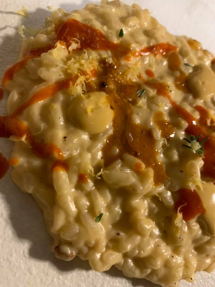 Casamare, risotto mantecato al burro con la ‘nduja, riccio di mare e zeste di limone