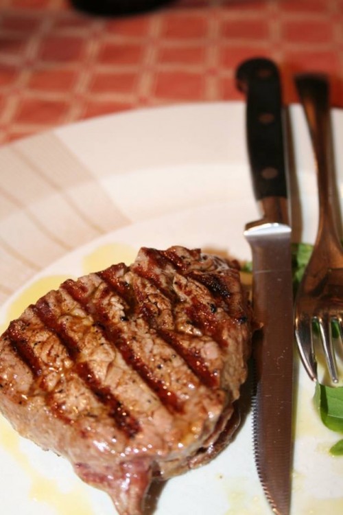 Infatti, sono arrivate delle succulenti costolette di agnello sia alla brace che impanate e fritte, e arrosticini di pecora, insomma roba che potevamo scalare il Monte Bianco e tornare senza perdere un grammo. Non contenti, arriva un filetto di vitello che sembrava un budino.