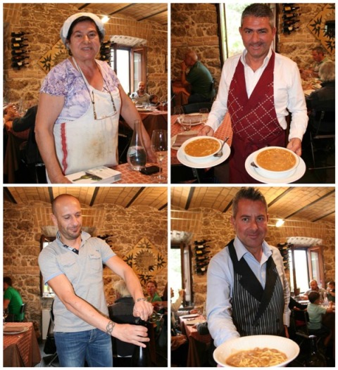 Ambiente caldo e già pieno di gente, Salvatore e Marcello scorrazzano fra i tavoli con piatti pieni di zuppe di fagioli e chitarrina spezzata (pasta lunga di forma quadrata, spezzata per minestre al cucchiaio e lunga per ragu vari o salse ai funghi galletti e salsiccia).