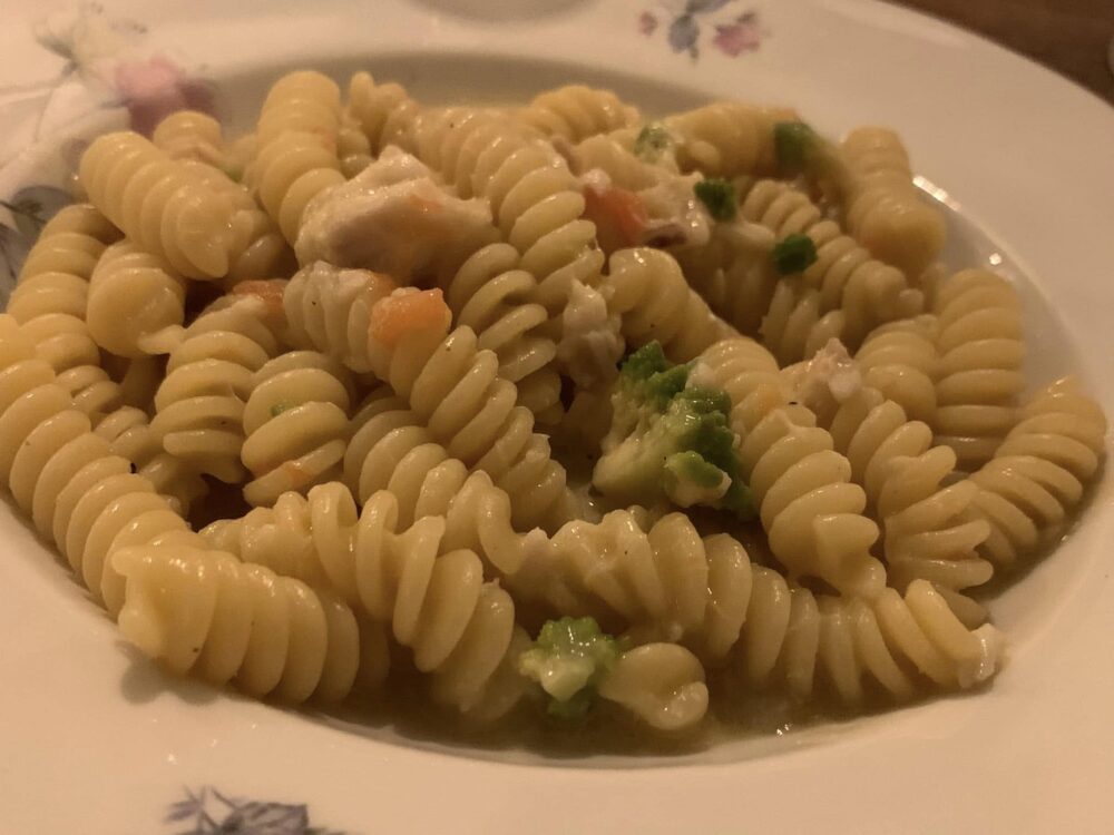 Tra i primi piatti, una gradevole zuppa di verdure di stagione per chi cerca conforto (e infatti l’hanno chiamata “del pellegrino”) e una sfiziosa declinazione (con i fusilli) della ricetta romana di terra-mare forse più conosciuta, con l’arzilla e il broccolo romano. Più asciutta e con una spinta marina più decisa rispetto a quella tradizionale.