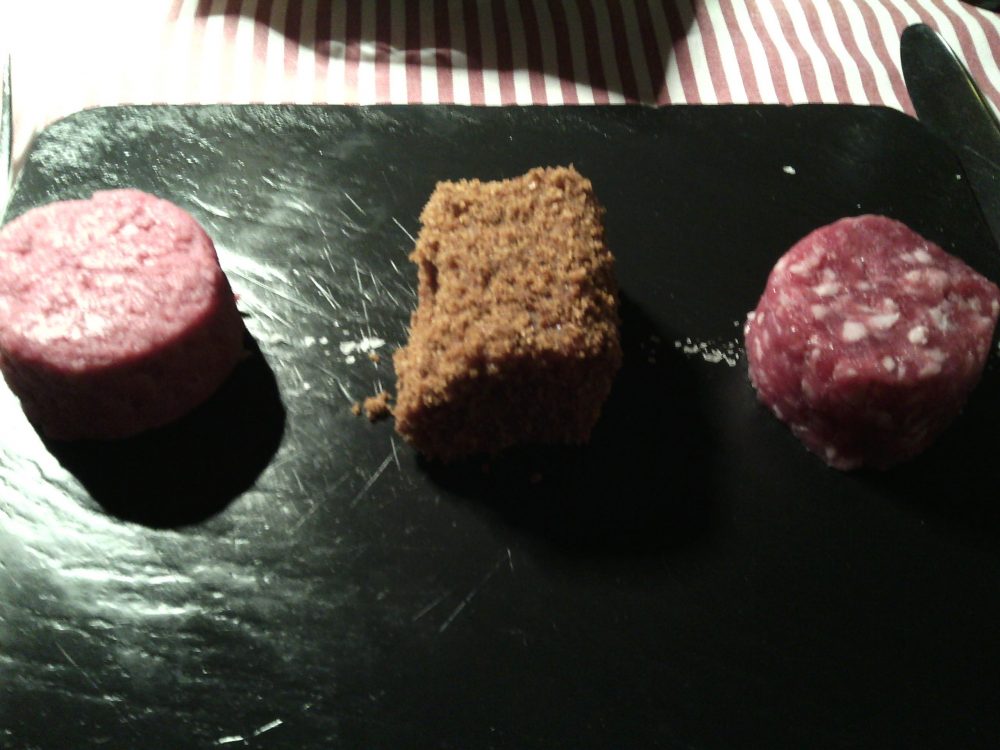 Ristorante Cosorzio, La cruda- variazione sulla carne cruda -battuta, marinata, insaccata