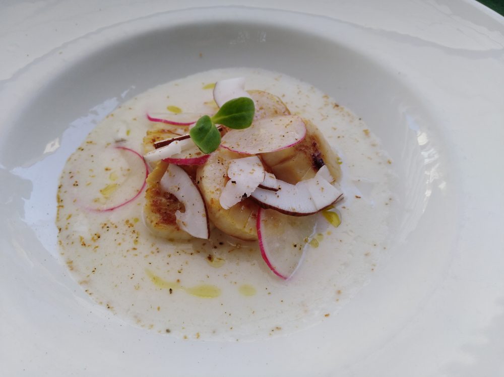 Ristorante Corte Visconti Capasanta scottata, vellutata al latte di cocco