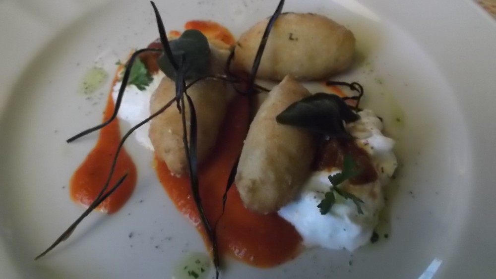 Ristorante Corte Visconti Bunuelos di baccala’ fritto con stracciata di bufala e pomodori confit