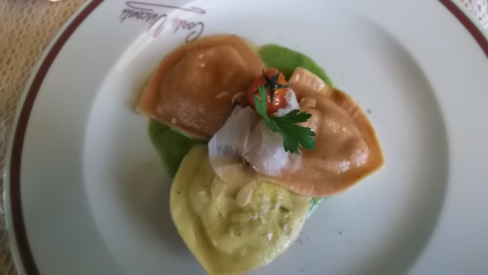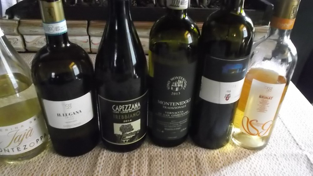 A tutto questo il sommelier ha abbinato nell’ordine: Spumante Brut Passerina di Fontezoppa; Lugana Bio San Giovanni Pasini 2015; Trebbiano Capezzana 2014; Vernaccia di San Gimignano Montenidoli 2013; Rosso Siro Fifty Fattorie di Gratena 2010; San Gioan Brinat San Giovanni Pasini 2012; Passito Riesling Renano. Un gran parterre davvero!