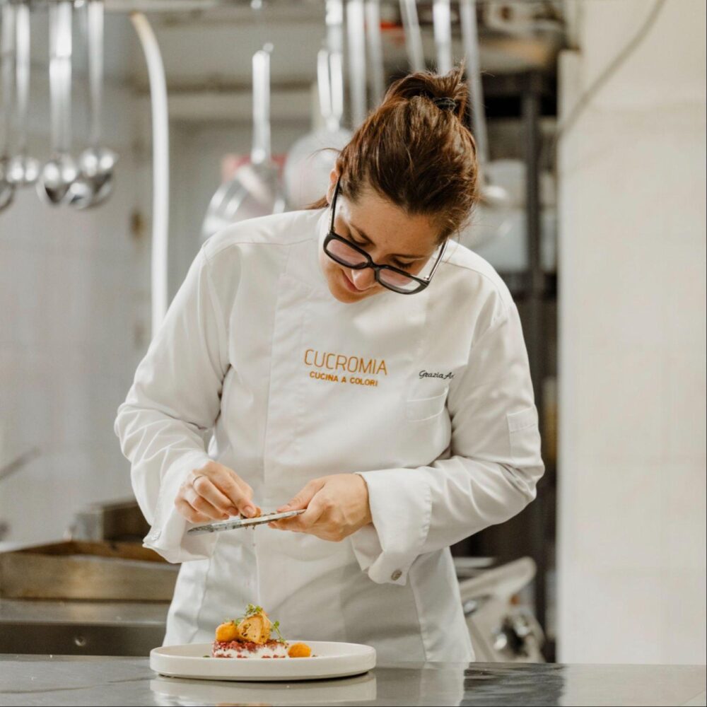 Grazia, nata a Trinitapoli ma abruzzese per formazione, anima la struttura con una cucina che lei stessa definisce spiccatamente territoriale pur se con un adeguato condimento di rivisitazione da generare, nomen omen , un armocromia sfruttando i temi della successione delle stagioni.