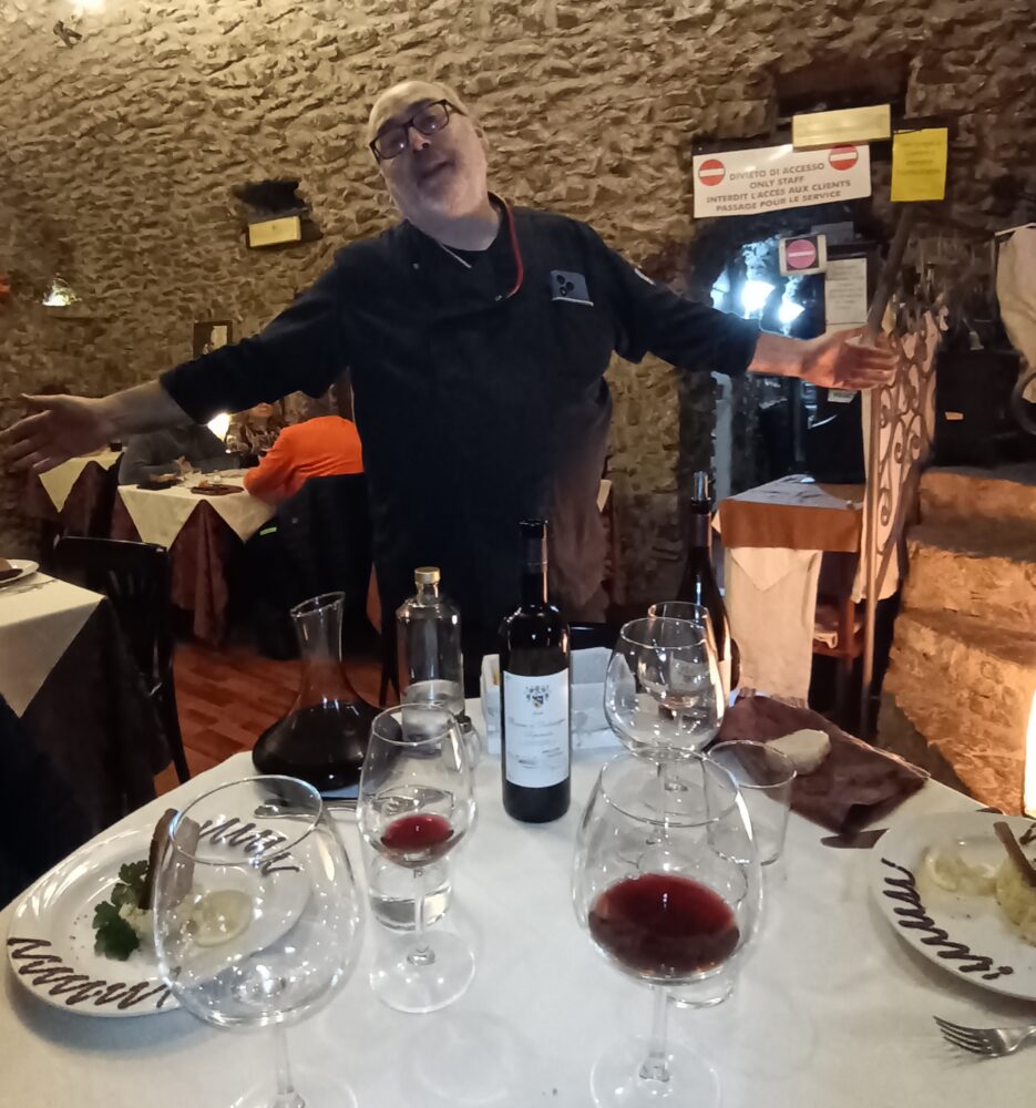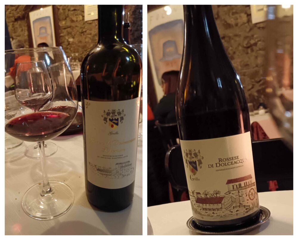 Ai piedi del castello ho pranzato in un contesto sospeso nel tempo. Una scoperta autentica, dove il Rossese di Dolceacqua — vino identitario del territorio — padroneggia con eleganza, esprimendo profumi mediterranei, trama sottile e beva raffinata, specchio della terra aspra e luminosa di Liguria.