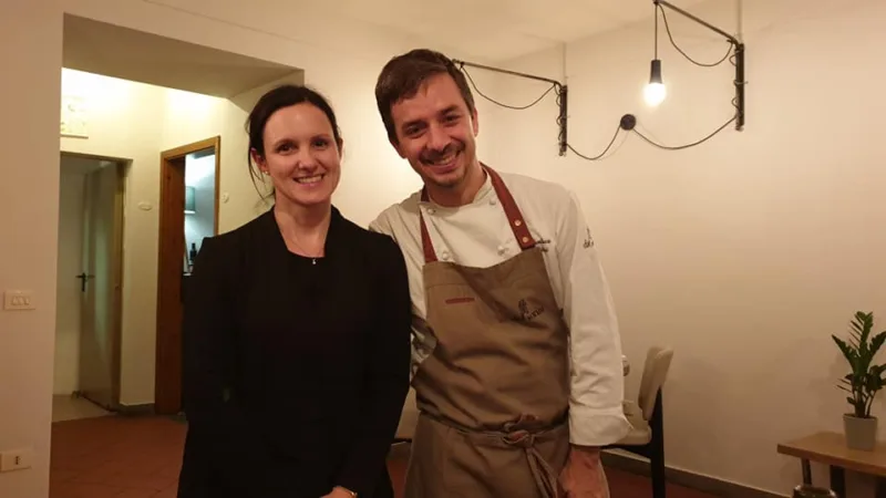 Siamo a Bagno di Romagna, sull’appennino tosco emiliano, giusto a metà strada tra Firenze e Rimini, un piccolo borgo che fa da snodo viario in cui è anche molto facile stordirsi nel paesaggio ovattato dell’autunno, luogo calmo e sereno che nasconde la tempra forte e sanguigna dei suoi abitanti. Concreti e legati alla terra, caldi come le sorgenti di acqua termale che scorrono nel sottosuolo. Consideriamo Gianlcua Gorini, che qui ha trovato la sua seconda casa, già da tempo uno degli chef più interessanti e brillanti del panorama italiano. Giovanissimo quando mangiammo la prima volta alle Giare. Compiuto oggi, quando ci accoglie nel ristorante che, insieme a sua moglie Sara Silvani, ha fortemente voluto. Ottima padrona di casa Sara, attento Mauro Donatiello a maneggiare una bella carta dei vini. Felici oggi per tutti loro perchè hanno raggiunto il traguardo della stella michelin.