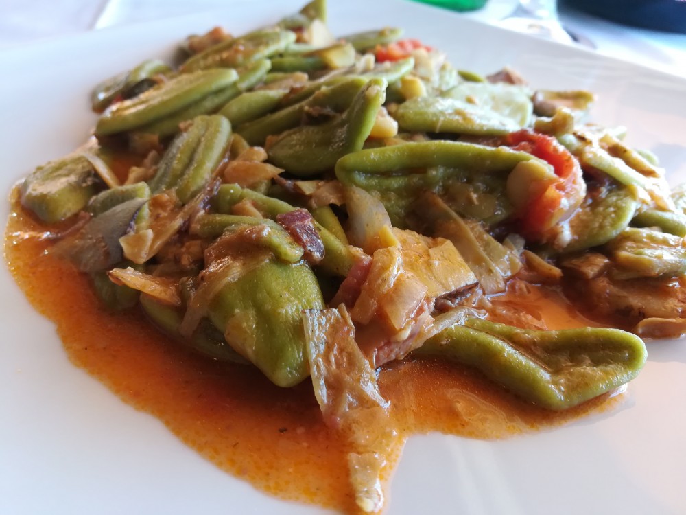 Prendiamo due primi piatti differenti perché logicamente la voglia di assaggiare più cose è sempre impellente: Foglie d’ulivo con carciofi grigliati e Ravioli ripieni di zucca e ricotta conditi con cernia e pistacchi freschi (nel menù infatti vengono proposti alcuni piatti con del pesce fresco abbinato ai prodotti del territorio e quando disponibile con della pasta artigianale con le ortiche selvatiche raccolte in loco).