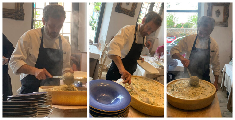 Lo chef si affaccia solo al momento del servizio del risotto di mare, per impiattare e salutare i tanti habituè. E, proprio come nelle domeniche in famiglia, è previsto il bis. Basta chiedere.