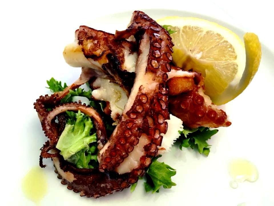 Delicatissimo il carpaccio di Baccalà & Zenzero. Forse un po’ in eccesso. La materia prima è stata adeguatamente dissalata. Manca quel tocco di sprint in più, che però si recupera adeguatamente sia nella batteria dei crudi in purezza dove regna sovrana la tagliatella di calamaro con zeste di limone ed olio extravergine d’oliva artigianale del Beneventano. La materia prima è una componente di assoluto spessore. Sciogievole e ben cotto il polpo. Lessato e dunque grigliato. Croccante fuori e adeguatamente morbido all’interno nei tentacoli più esterni. Manca qualche componente di completamento ma la materia prima è innegabilmente una delle migliori del panorama cittadino, così come la mano dello chef.