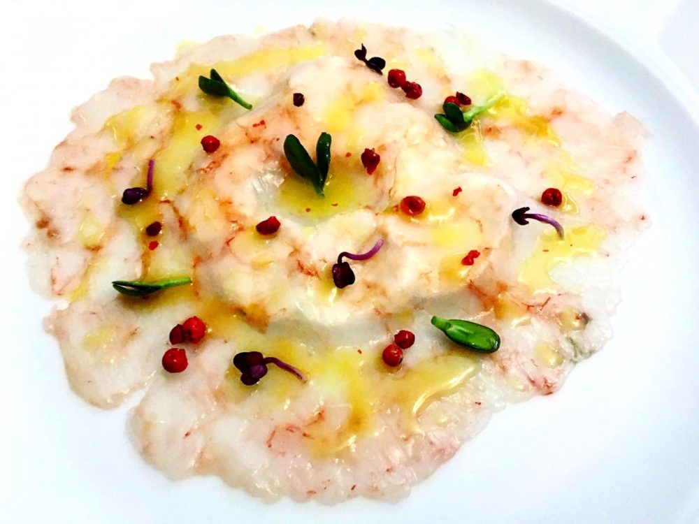 I Faraglioni – Carpaccio di Gambero Rosso, Bufala, Limone & Pepe Rosa
