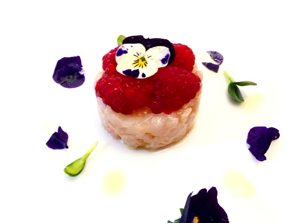 I Faraglioni – Tartare di Gambero Rosa, Aceto di Lamponi, Olio Extravergine del Beneventano & Lamponi