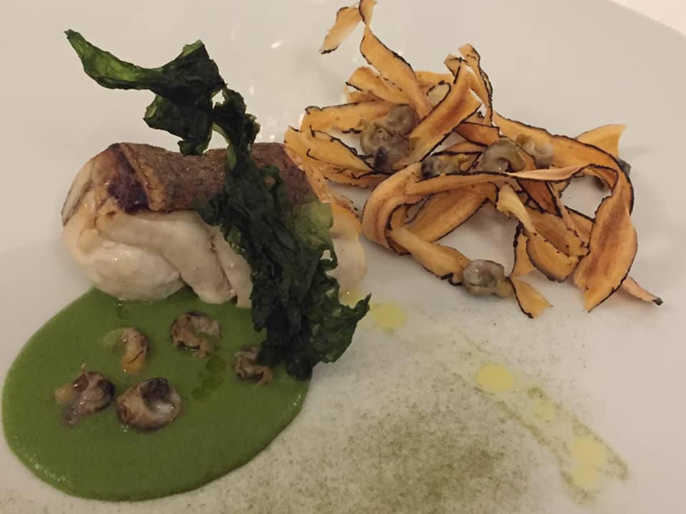 Ristorante Garò, cernia di fondale su salsa di scarola riccia, con maruzzielli e scorzanera