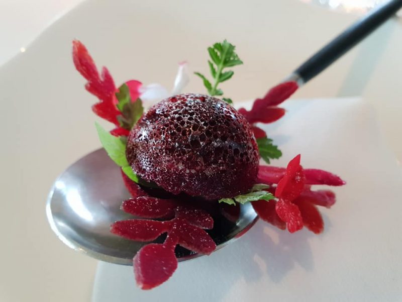 Notevole l’abbinamento ai succhi vegetali (juce pairing), potrete sceglierlo al posto del vino e vi assicuro che non ne rimarrete affatto delusi. Il nostro abbinamento è stato: Green apple e lemon thyme, green tea e tarragon, apple Jerusalem artichoke e oalong tea, cherry e aalga sol, blackberries e beach wood, wood sarrel, sparkling cloudberries.