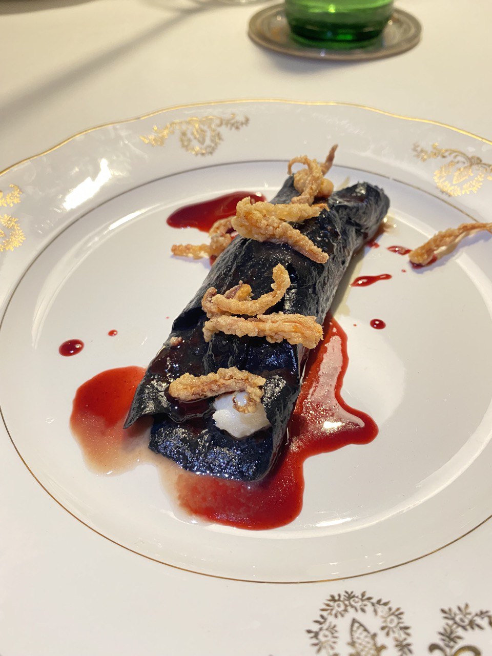 Piatti del primo menù assaggiato a pochi giorni dall’apertura con un bel margine di crescita per centrare bene l’obiettivo di organizzare un’offerta coerente con il luogo e il territorio. Non mancano le basi e un buon palato. Si ondeggia tra qualche guizzo creativo dal gusto intenso come la Crepe al nero di calamaro e baccalà mantecato con salsa al Vermouth e melograno, a un solido piatto della tradizione ottimamente realizzato come gli Strasciati al ragù di cinghiale. Buona e molto ben realizzata la Melanzana all’acquapizza, omaggio al tataki di Davide Scabin. Bilanciato e fresco il dessert al Cioccolato bianco e fichi d’india.