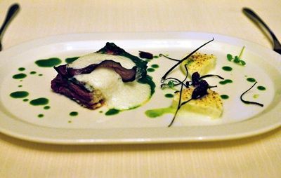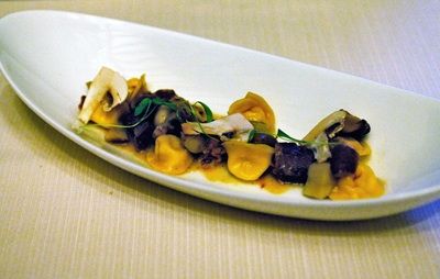 Con mia moglie Laura ci siamo “divisi” le portate in modo da avere un quadro più ampio della cucina del Piastrino: abbiamo iniziato con una eccellente “Macedonia di Finferli, cipollotto e mirtilli con uovo in camicia e crema di ricotta” (13 euro) e “Cappelletti di parmigiano, stinco e porcini” (14 euro), piatto saporito e dagli ingredienti ben dosati.