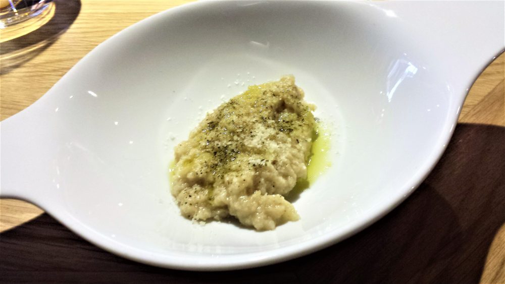 Due: non li deludere, credono in te… Era una vita che non vedevo avvinare i bicchieri prima della mescita, tra l’altro di un vino buono, ma non particolarmente pregiato. Era una mezza vita che non vedevo una carta dei vini, in un ristorante che ha consapevolezza di sé, ampia non troppo ma quanto basta e con ricarichi intorno a un misero e commendevole cinquanta per cento. La sala gira in souplesse, la sommelier tiene il ritmo senza invadenza, aiutata dai cuochi che a turno servono al tavolo, precisi e rapidi, in coppola grigia e camicia bianca. Lo chef non c’è, ma come il bimbo di cui sopra, è giustificato, e la motivazione me lo rende simpatico, mettendo un altro mattoncino nella costruzione di una risposta al quesito iniziale.