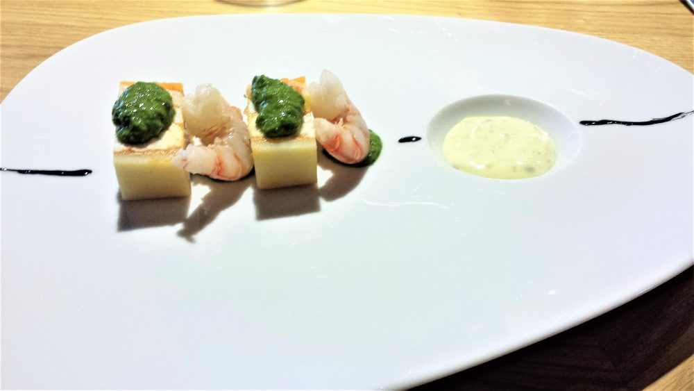 Impronta d’acqua, Cappon magro in terrina, salsa verde, gambero viola