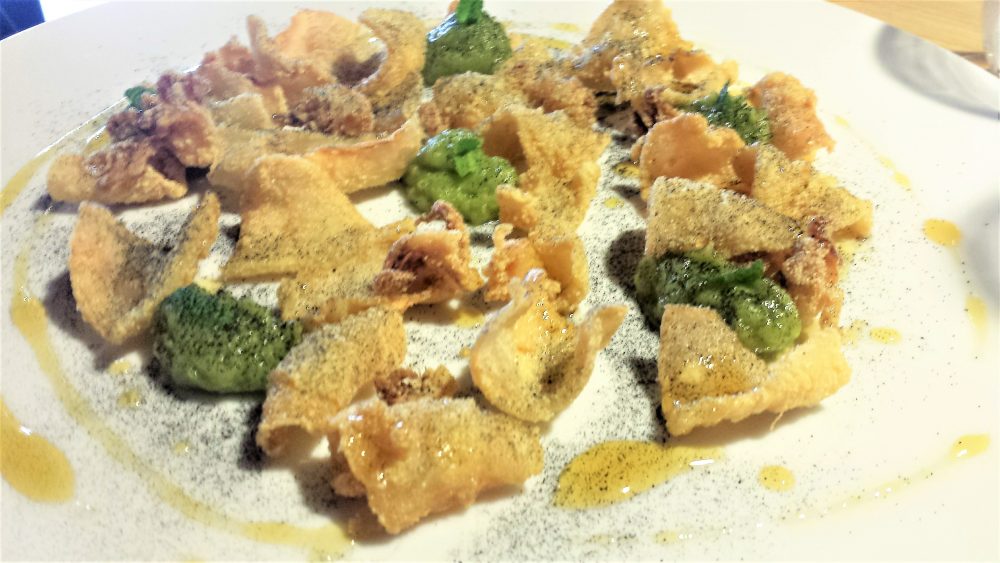 Impronta d’acqua, Frittura di calamaretti, guacamole, salsa agrodolce