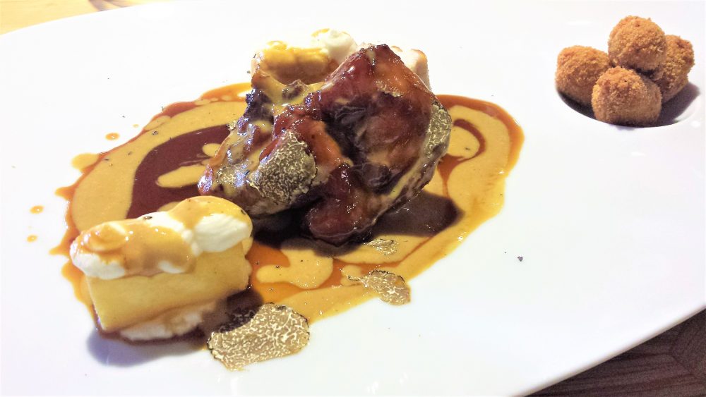 Impronta d’acqua, Coniglio al Marsala, patate fondenti, salsa la foie gras, tartufo nero