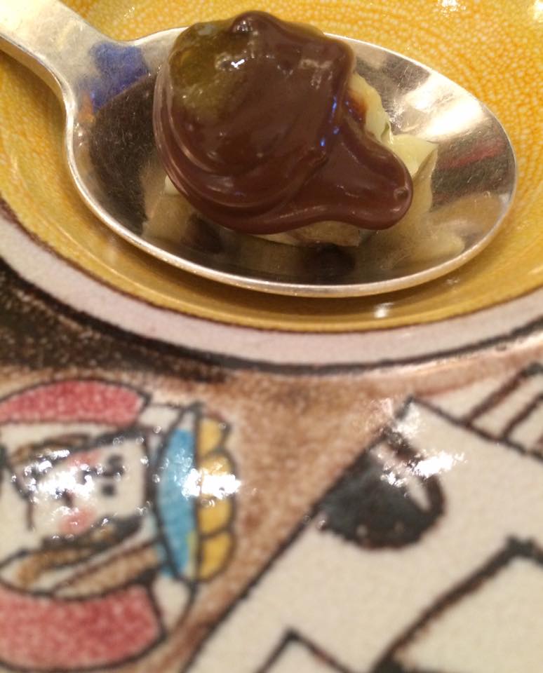 La Caravella, il Menu dei 60 anni,melanzana al cioccolato al cucchiaio