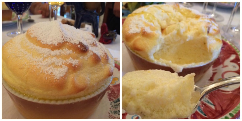 Ed eccolo il «sole nel piatto» che commuoveva Salvatore Quasimodo, il soufflé più sontuoso che potrete incontrare sulle strade della Costiera. Nuvola di zucchero e uova, nella versione ‘a due colori’ che faceva la madre di Antonio, con limone e cioccolato.