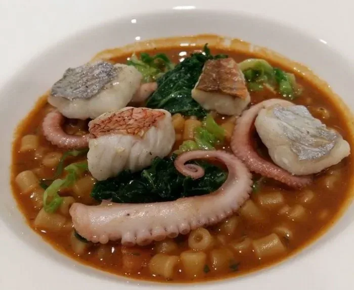 La Galleria, zuppa di pesce con verdure marinate 24/2/2016 Torna a: La Galleria a Gragnano e la cucina di Giulio Coppola La Galleria, zuppa di pesce con verdure marinateSuccessiva →