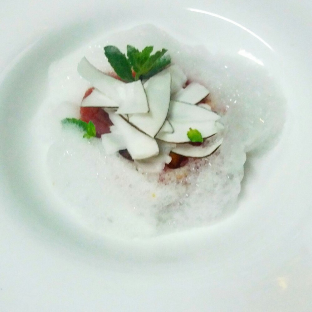 Buone le fritturine napoletane che aprono la cena, piacevolissimo il totano ripieno di scarola su crema di pane ma è “l’isola che non c’è”, ossia la tartarre di tonno con melone, aria di vodka al melone e cocco che fa scattare l’applauso mentale.