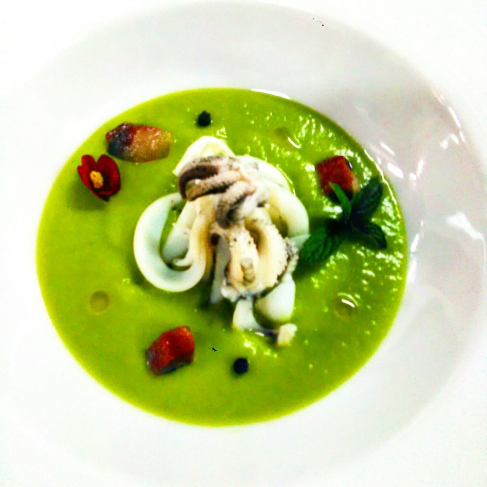 La ricciola invece servita per secondo con crema di ravanelli era bellissima a vedersi ma meno incisiva al gusto, molto meglio la seppia con i piselli a cui io avrei aggiunto una zesta di limone (in italiano non esiste questa parola, ma in francese sì, da noi il termine corretto per indicare la parte colorata della buccia degli agrumi è flavedo ma mai ho trovato una ricetta con flavedo di…) a dare acidità.