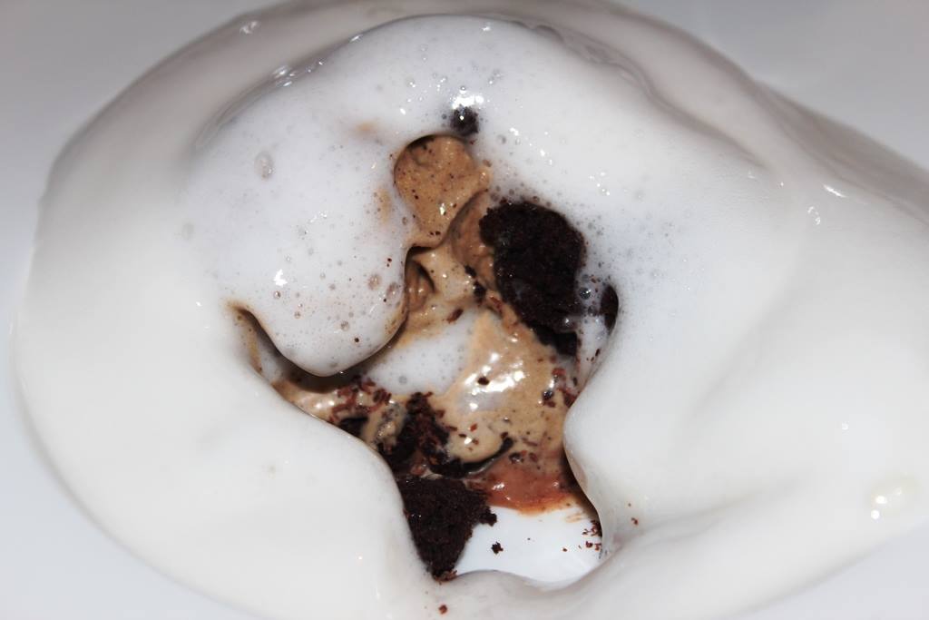 Il piatto del viaggio e piccolo capolavoro è senza dubbio il piccione, estratto di alloro e cipolla fondente. Il gesto del cuoco, la cottura sulla griglia che lo lascia succoso e “violento” nel gusto con un abbinamento a dir poco sorprendente.