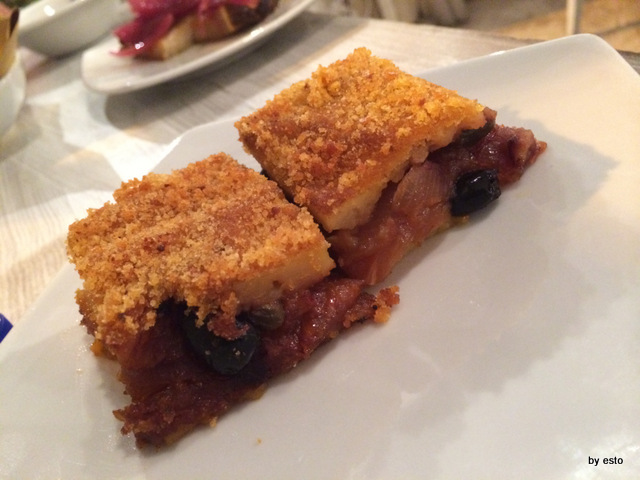 Si comincia tra pitta di patate alla marinara, farcita di pomodoro, capperi e olive nere, e polpette all’aglio nel sugo di pomodoro.
