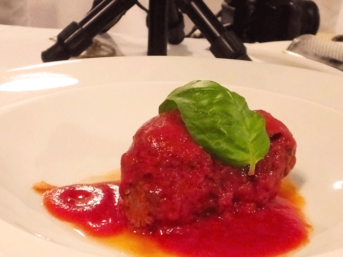 Siamo a circa 900 metri di quota e chiediamo carne! Era prevista anche quella nel “divertimento” promesso! Così è la volta di Sua maestà la braciola (involtino di vitello con ragù 24 ore) dove oltre ad una grande qualità di carne (podolica nella fattispecie) la differenza la fa il pomodoro Prunill dell’Azienda Paglione che nonostante la lunghissima cottura conserva ancora tutto quel suo bilanciato gusto sospeso tra l’acido e il dolce.