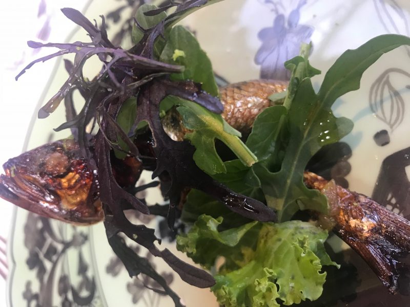 Un divertimento poi la Sarda di lago affumicata e fritta a ricordare la tradizione di mangiare gli uccelletti ben cotti alla brace. Qui ad essere ben cotta, asciuttissima e croccante è la sarda con i suoi mille aromi.