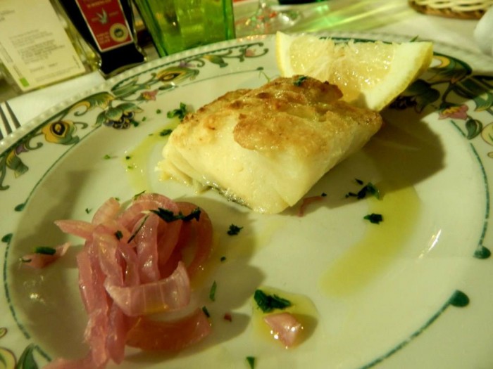 Veniamo accolti da un sontuoso antipasto: alici fritte e involtino di pesce bandiera e provola affumicata. Come da copione, materia prima eccezionale (al gusto, le alici sono molto simili a quelle del Calore… ;-)) Squisito anche il polpetto alla Luciana, in evidenza sia il pesce che il pomodoro di cottura.