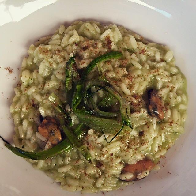 Robusti e ricchi di sapore anche i primi, con le tagliatelle di farro con acciughe e pecorino e il risotto con puntarelle, cozze e bottarga.