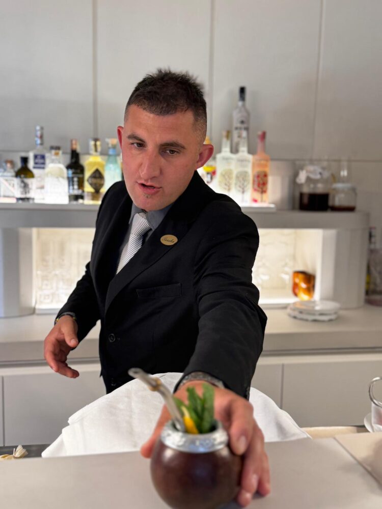 I dessert sono capolavori visivi e gustativi: una crostatina in cristalli di zucchero con dulce de leche, latte di bufala e un sorbetto alle erbe dei Monti Lattari, una mousse all’espresso napoletano con tortino 100% arabica, ganache, fragole, cioccolato soffiato e basilico greco.Infine, la piccola pasticceria: mochi all’amarena, tartelletta agli agrumi, cremoso al caffè con foglia d’oro e tartufo fondente al 70%.