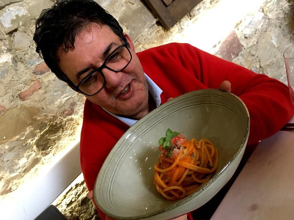 Al Maeba, spaghetti, gambero rosso e Pomodoro e San Marzano