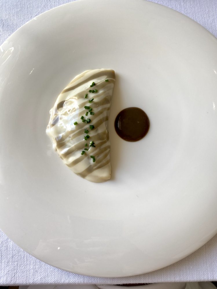 Così come la Crespella ai funghi, parmigiano e ostrica, con un’impronta iodata molto interessante.
