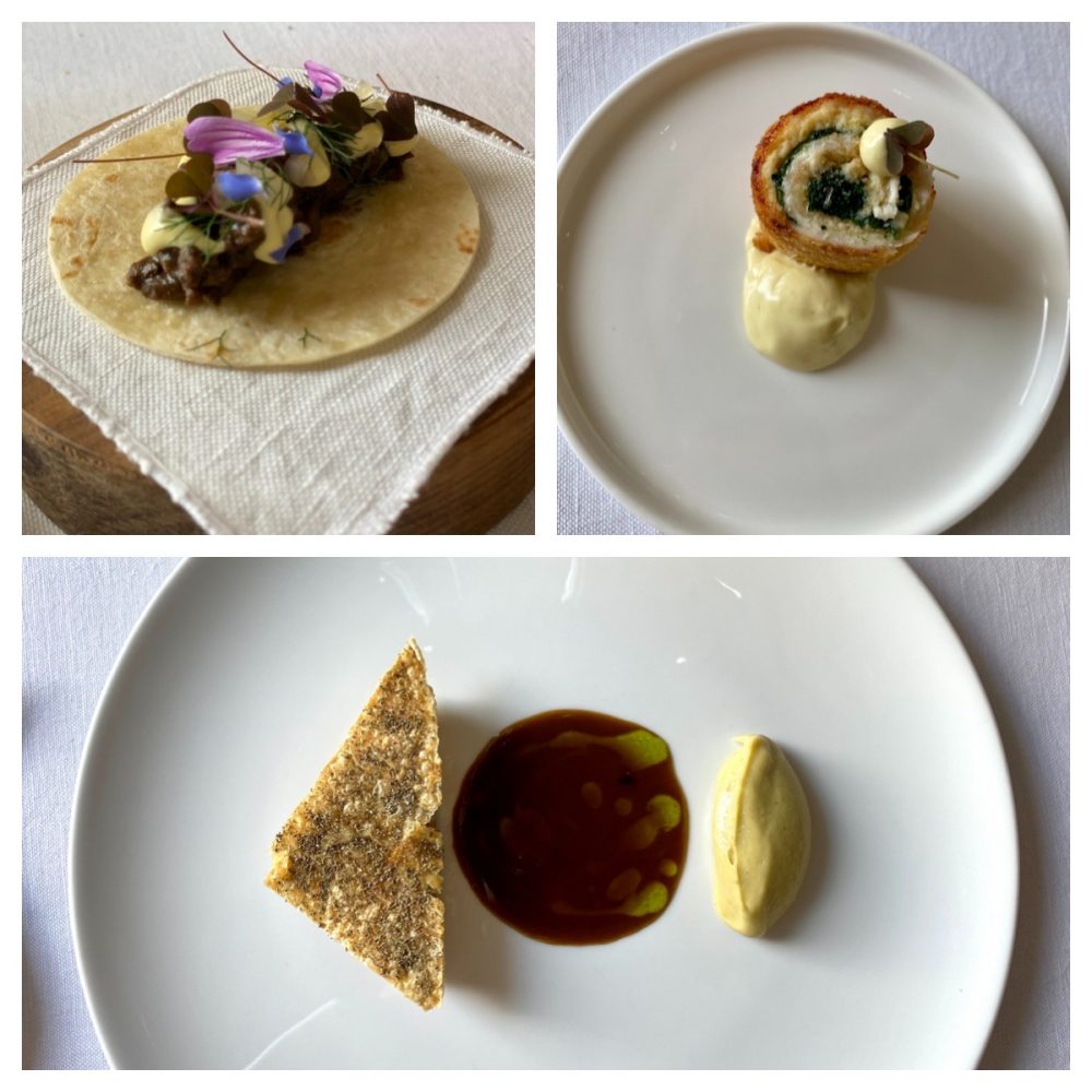 Il secondo aspetto è che la tecnica, non spinta, alla fine sfocia in una proposta composta, euilibrata, senza fughe in avanti d laboratorio gastronomico, ma sicuramente centrate sul sapore. Da sottolineare lo scarso uso di sale, che è tra l’altro una caratteristica ancestrae delle zone interne rispetto alla costa e com i condimenti giusti che spaziano, senza interpretazioni manicee, dal burro fatto in proprio all’olio ravece, una delle cultivare più eccellenti che più vantare l’Italia.