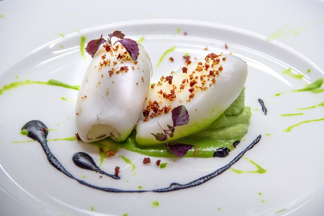 Seppia, panna cotta ai piselli e polvere di Pata Negra Foto di Massimo Kunstler, content creator esclusivo per Hotel Majestic Roma