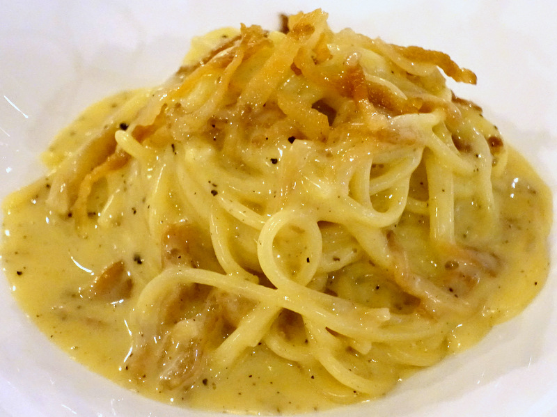 La cucina di Andrea è espressione optima dell’impeto vitalistico della sua età (e della mia, essendo quasi coetanei): ci sono i dei ex machinis (il babà di cui sopra ne è esempio pregnante), il rispetto ossequioso nei riguardi della tradizione ed anche un’ottima tecnica di trasformazione, che si sta affinando.