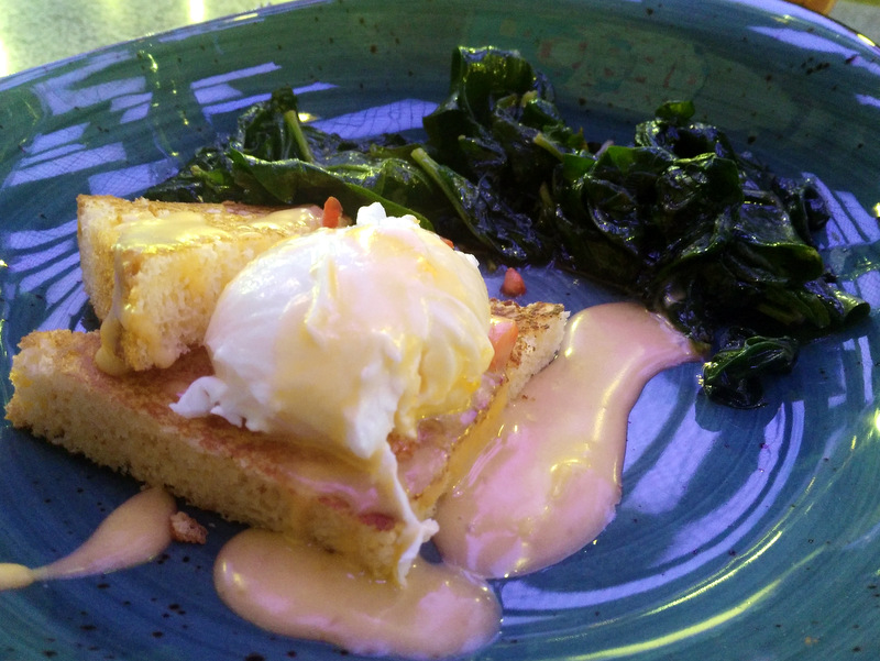 Ristorante Maritozzo a Mosca. Uovo in camicia, spinaci e salsa bernese