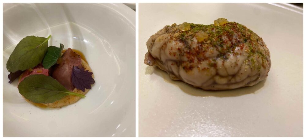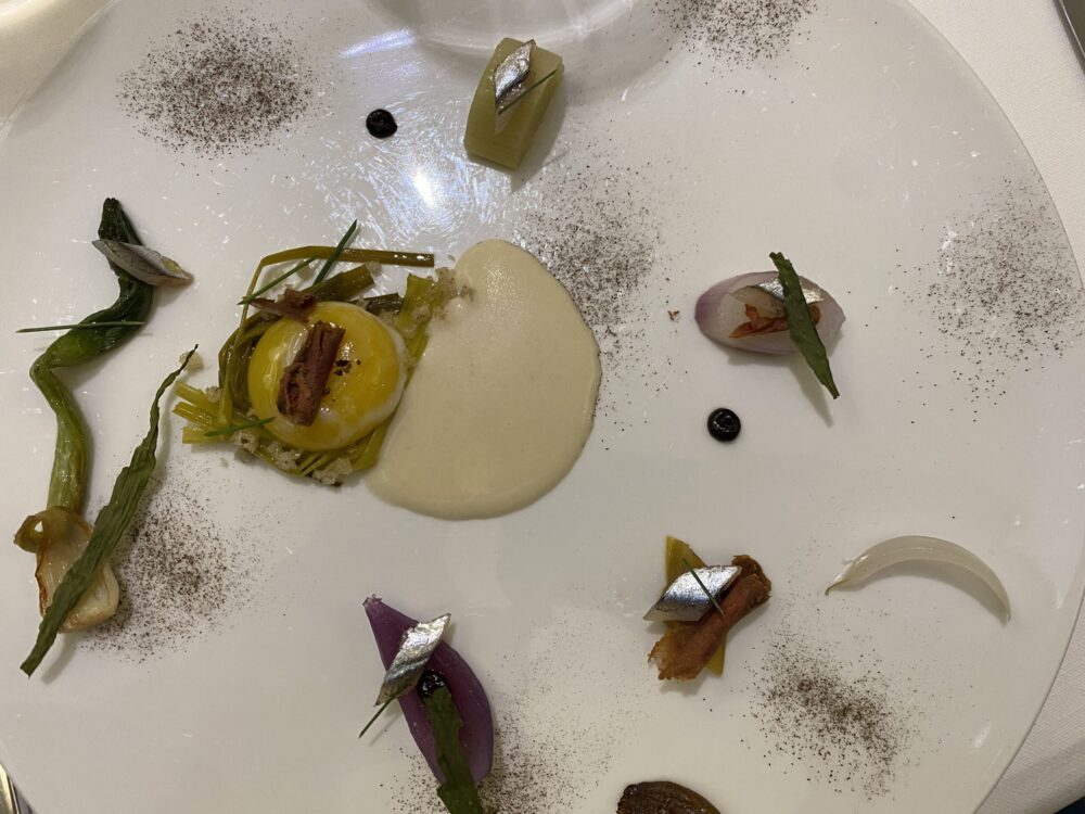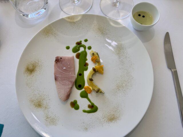 L’esperienza è bella, il rapporto con il vegetale risente delle lezioni di Passard e di Crippa, il pesce parla di tradizione giapponese ma anche tirrenica, le carne di alta scuola francese. In sala Anna e Dodo con un carta colta e brillante, in continuio aggiornamento con uno stage, per esempio, fatto al Geranium durante il periodo di chiusura, il gioco delle fermentazioni, i viaggi in Borgogna e tra le produzioni del territorio. Erbe, spezie, odori mediterranei, ma anche suggestioni giapponesi. Un paradiso per i vegetariano anche se si tratta di una cucina ecumenica e de-ideologizzata.