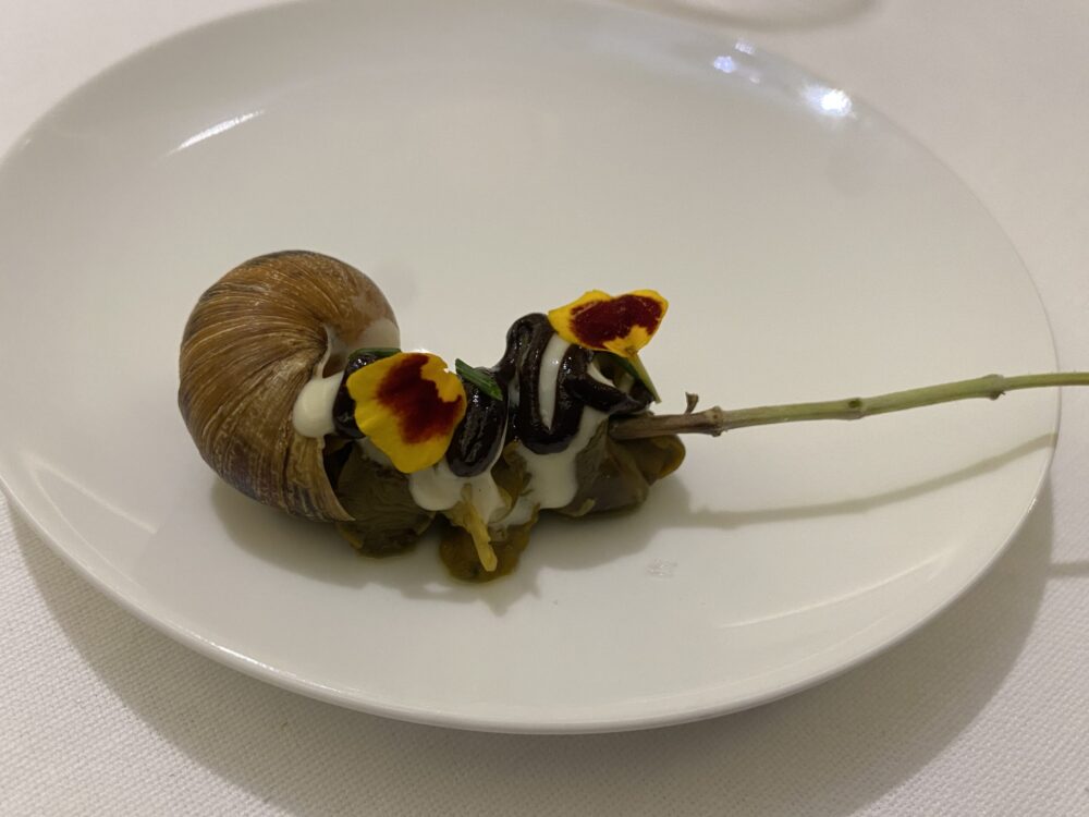 Non ho dubbi che questa sia una cucina da seconda stella perchè rielabora la lunga gavetta trasformandala in qualcosa di personale e di carattere. Domenico Marotta non insegue le acidità e gli amari, ma li usa quando osno necessari, non ha paura dei toni dolci, vedi la lumaca ad esempio. Insomma un carattere personale e unico.