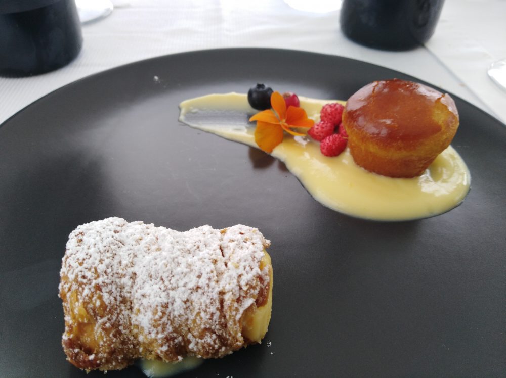 Ristorante Melchio’ – Baba’ al rhum su crema inglese e cannolo di sfoglia con crema al limoncello